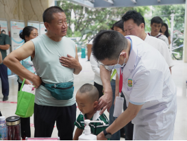 7月27日的大型义诊现场,怒江州人民医院的大厅里排起长龙。由九位来自全国各地的专家组成的义诊团队(云南省第一人民医院倪俊学教授、陈若平教授、王俊教授、章卓睿教授、张建昭教授、李艳红教授、汤春辉教授、唐兰芳教授、明溪教授),义诊范围涵盖小儿外科、小儿神经内科、小儿呼吸内科、耳鼻喉科、中医儿科等多个领域,为200多个患儿和家庭提供了医疗咨询、疾病诊断和治疗建议。